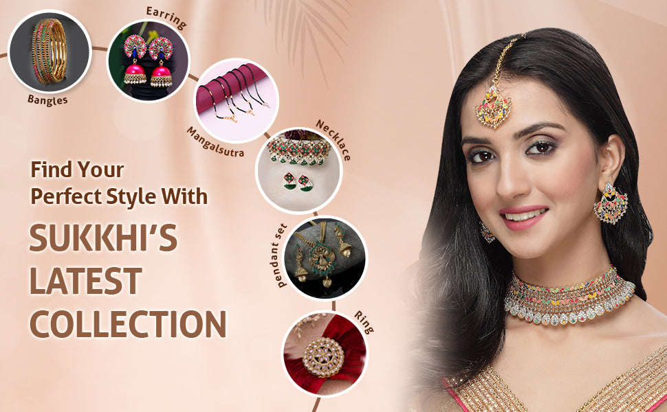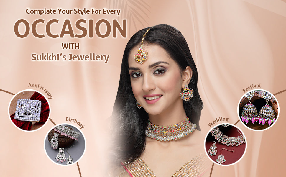 * Complete Jewelry Ensemble: With a matching choker necklace, earrings, and Maangtika, this Sukkhi jewellery set provides a well-coordinated and complete ensemble, suitable for weddings, festivals, and special celebrations.