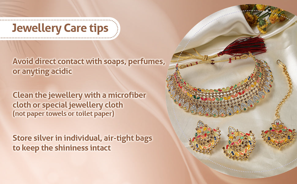 * Care Instruction : Avoid water contact, including swimming or bathing. Keep away from chemicals like perfumes and lotions. Store in a cool, dry place away from sunlight. Clean gently with a soft, lint-free cloth. Handle delicately to avoid bending or pulling. This will keep your jewellery shining for years.