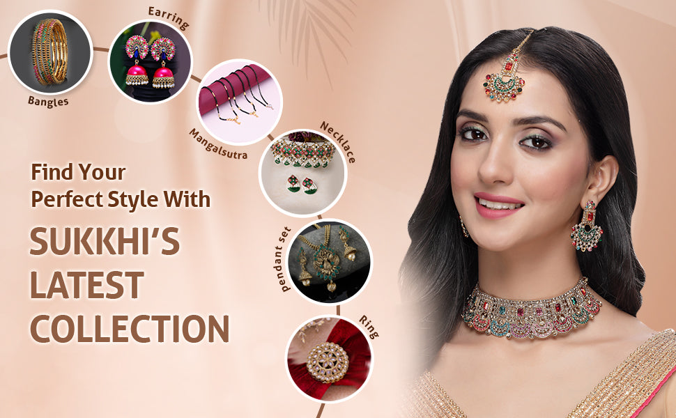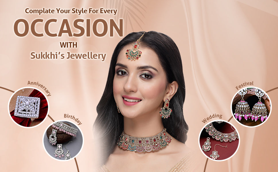 * Complete Jewelry Ensemble: With a coordinated choker necklace, earrings, and Maangtika, this Sukkhi jewellery set provides a well-matched and complete ensemble, suitable for weddings, parties, and special occasions.