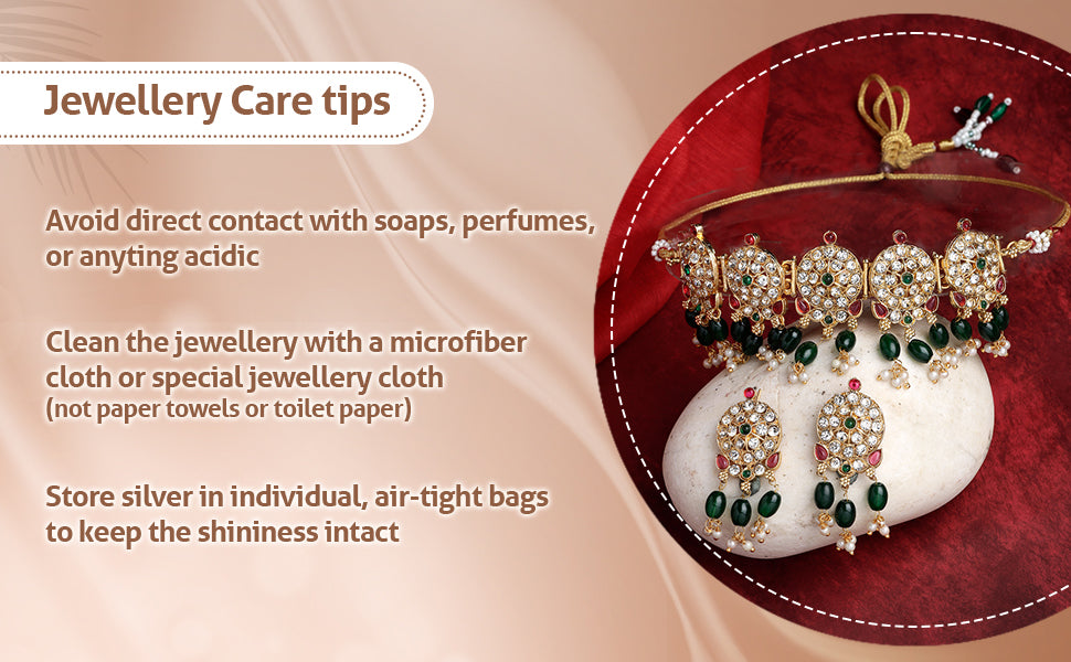 * Care Instruction : Avoid water contact, including swimming or bathing. Keep away from chemicals like perfumes and lotions. Store in a cool, dry place away from sunlight. Clean gently with a soft, lint-free cloth. Handle delicately to avoid bending or pulling. This will keep your jewellery shining for years.
