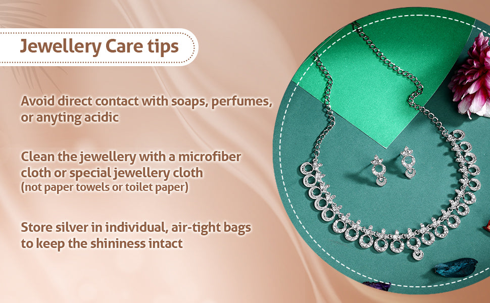 * Rhodium Plated Finish: Coated with radiant rhodium plating, the jewellery offers a polished silver-tone shine that enhances its overall charm and complements all skin tones.