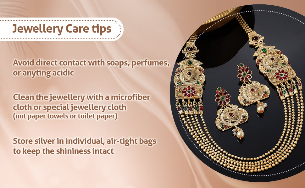 * Care Instruction : Avoid water contact, including swimming or bathing. Keep away from chemicals like perfumes and lotions. Store in a cool, dry place away from sunlight. Clean gently with a soft, lint-free cloth. Handle delicately to avoid bending or pulling. This will keep your jewellery shining for years.