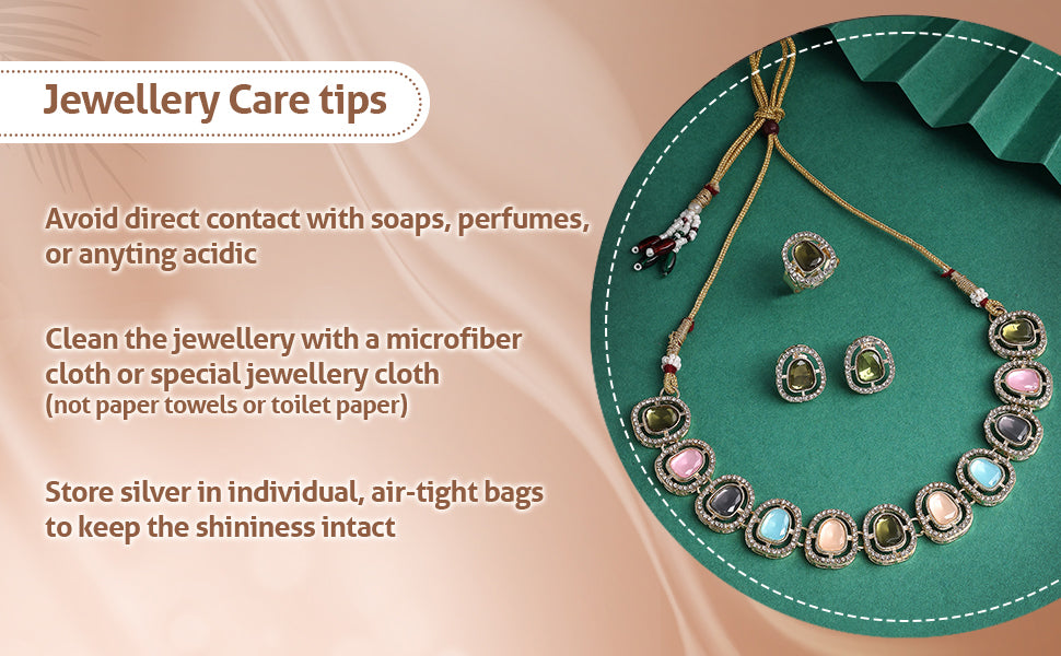 * Care Instruction : Avoid water contact, including swimming or bathing. Keep away from chemicals like perfumes and lotions. Store in a cool, dry place away from sunlight. Clean gently with a soft, lint-free cloth. Handle delicately to avoid bending or pulling. This will keep your jewellery shining for years.
