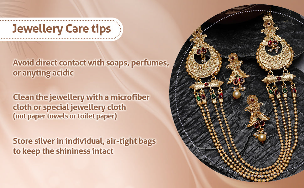 * Care Instruction : Avoid water contact, including swimming or bathing. Keep away from chemicals like perfumes and lotions. Store in a cool, dry place away from sunlight. Clean gently with a soft, lint-free cloth. Handle delicately to avoid bending or pulling. This will keep your jewellery shining for years.
