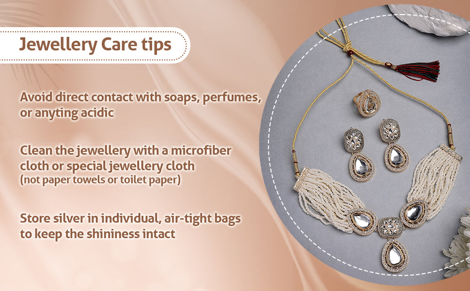 * Care Instruction : Avoid water contact, including swimming or bathing. Keep away from chemicals like perfumes and lotions. Store in a cool, dry place away from sunlight. Clean gently with a soft, lint-free cloth. Handle delicately to avoid bending or pulling. This will keep your jewellery shining for years.