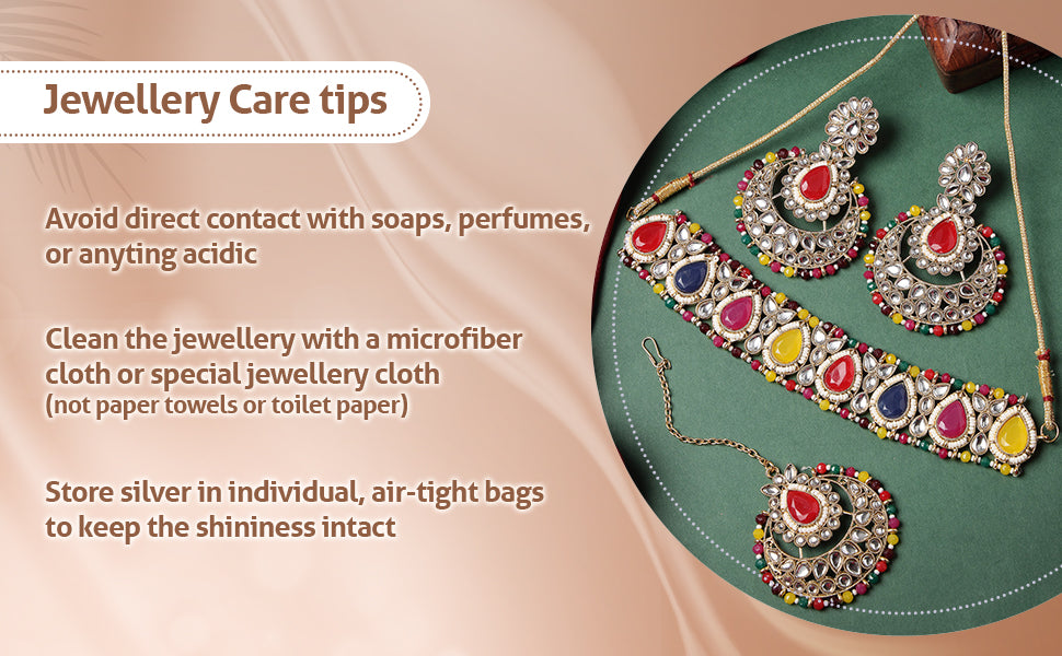 * Care Instruction : Avoid water contact, including swimming or bathing. Keep away from chemicals like perfumes and lotions. Store in a cool, dry place away from sunlight. Clean gently with a soft, lint-free cloth. Handle delicately to avoid bending or pulling. This will keep your jewellery shining for years.