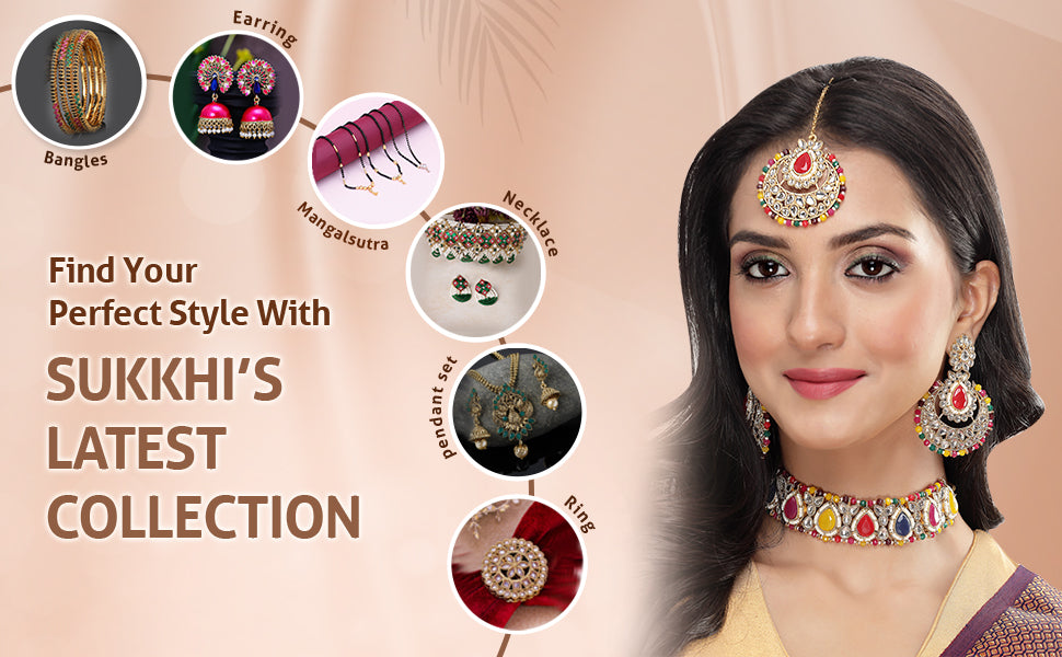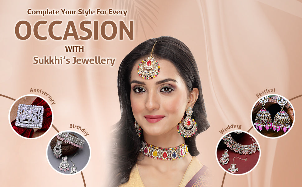 * Complete Jewelry Ensemble: With a coordinated choker necklace, earrings, and Maangtika, this Sukkhi jewellery set offers a well-matched and complete ensemble, suitable for weddings, festivals, and special occasions.