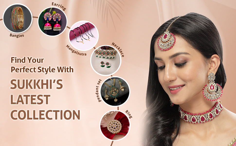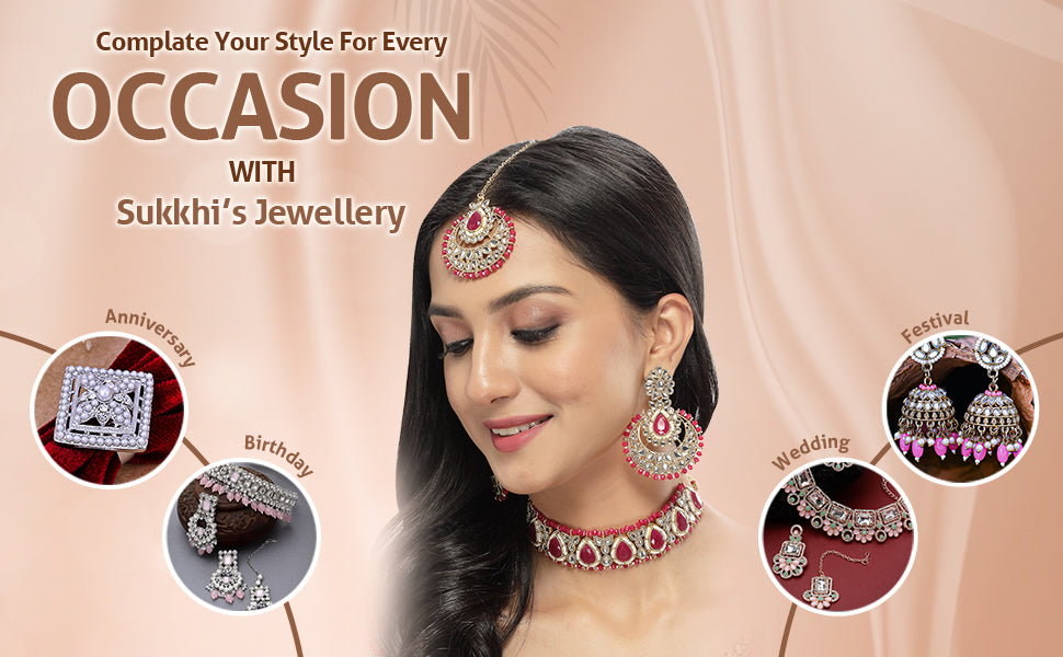 * Complete Jewelry Ensemble: With a coordinated choker necklace, earrings, and Maangtika, this Sukkhi jewellery set offers a well-matched and complete ensemble, suitable for weddings, festivals, and special occasions.