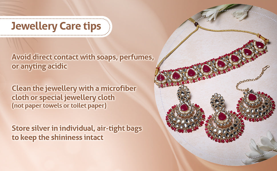 * Care Instruction : Avoid water contact, including swimming or bathing. Keep away from chemicals like perfumes and lotions. Store in a cool, dry place away from sunlight. Clean gently with a soft, lint-free cloth. Handle delicately to avoid bending or pulling. This will keep your jewellery shining for years.
