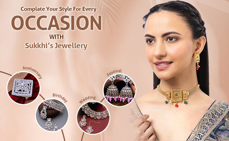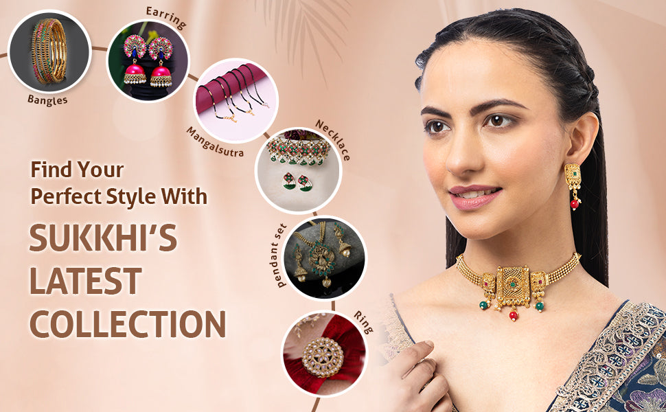 * Traditional Design: Sukkhi Indian ethnic choker necklace set features a classic gold-plated design adorned with crystal stones for a refined look. Gold Plating: The necklace and earrings are elegantly gold-plated, enhancing their visual appeal and charm.