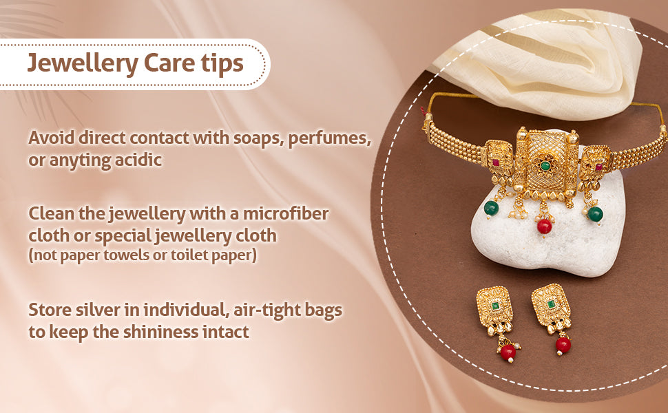 * Care Instruction : Avoid water contact, including swimming or bathing. Keep away from chemicals like perfumes and lotions. Store in a cool, dry place away from sunlight. Clean gently with a soft, lint-free cloth. Handle delicately to avoid bending or pulling. This will keep your jewellery shining for years.