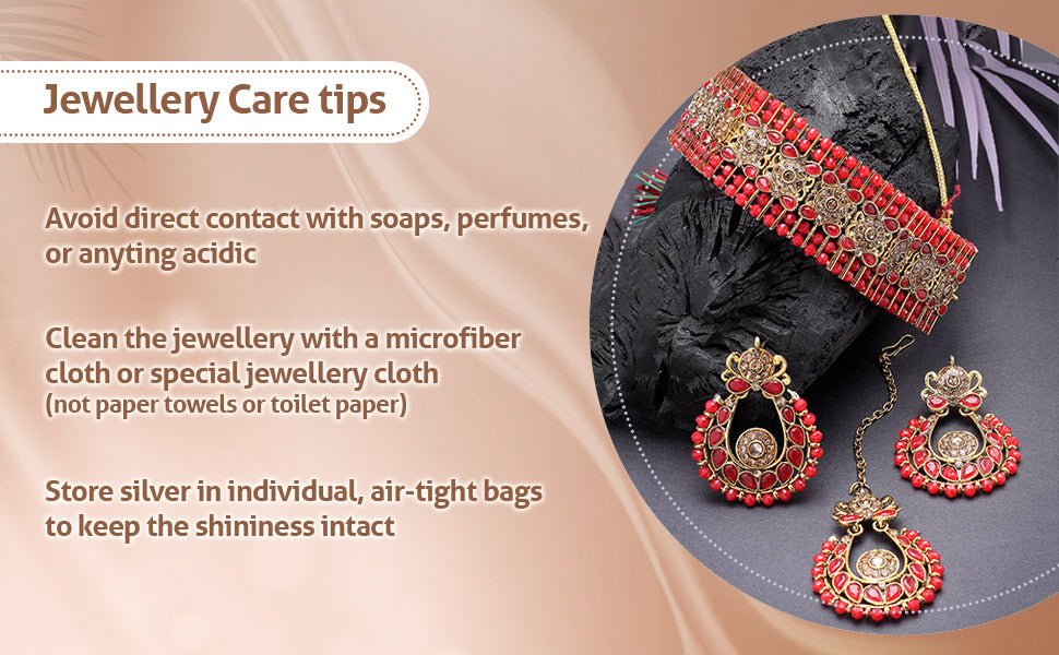 * Care Instruction : Avoid water contact, including swimming or bathing. Keep away from chemicals like perfumes and lotions. Store in a cool, dry place away from sunlight. Clean gently with a soft, lint-free cloth. Handle delicately to avoid bending or pulling. This will keep your jewellery shining for years.