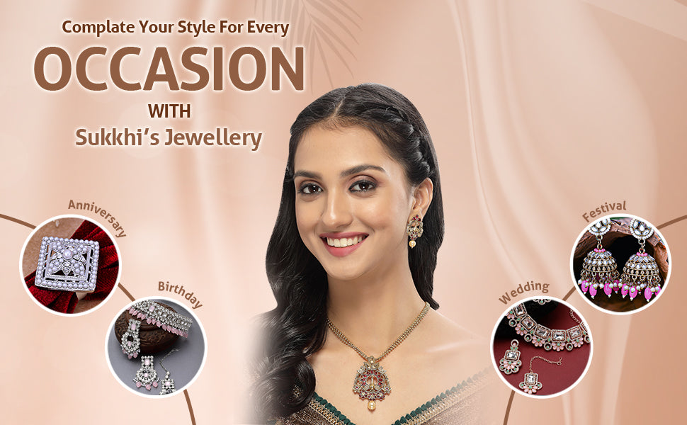 * Premium Quality Craftsmanship: Crafted with meticulous attention to detail, this Sukkhi jewellery set is made from high-quality materials, ensuring durability and long-lasting shine. The intricate craftsmanship showcases the brand's dedication to creating exquisite jewellery pieces.