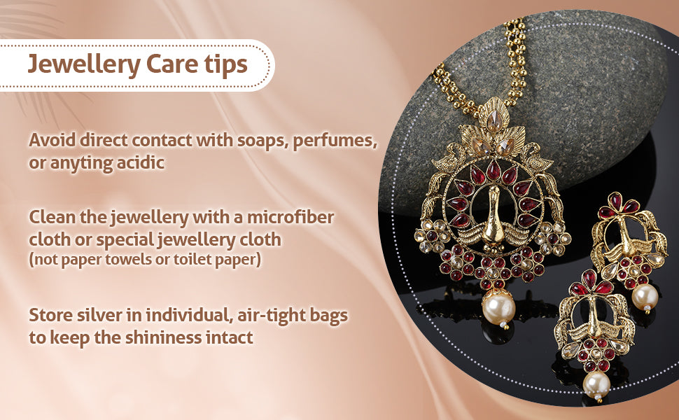 * Care Instruction : Avoid water contact, including swimming or bathing. Keep away from chemicals like perfumes and lotions. Store in a cool, dry place away from sunlight. Clean gently with a soft, lint-free cloth. Handle delicately to avoid bending or pulling. This will keep your jewellery shining for years.