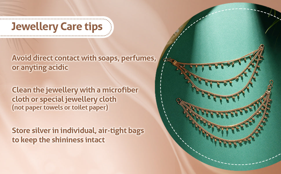 * Care Instruction : Avoid water contact, including swimming or bathing. Keep away from chemicals like perfumes and lotions. Store in a cool, dry place away from sunlight. Clean gently with a soft, lint-free cloth. Handle delicately to avoid bending or pulling. This will keep your jewellery shining for years.