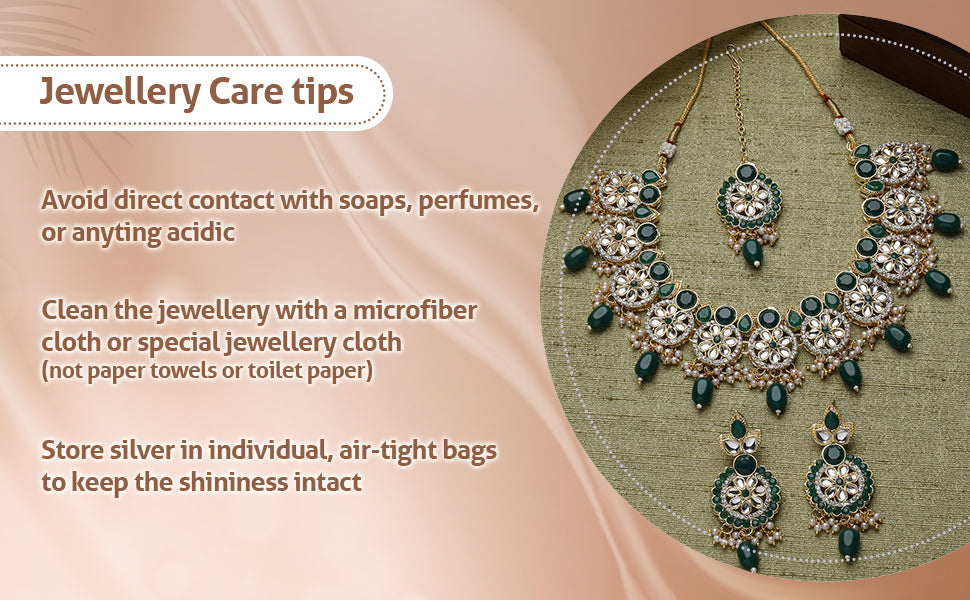 * Care Instruction : Avoid water contact, including swimming or bathing. Keep away from chemicals like perfumes and lotions. Store in a cool, dry place away from sunlight. Clean gently with a soft, lint-free cloth. Handle delicately to avoid bending or pulling. This will keep your jewellery shining for years.
