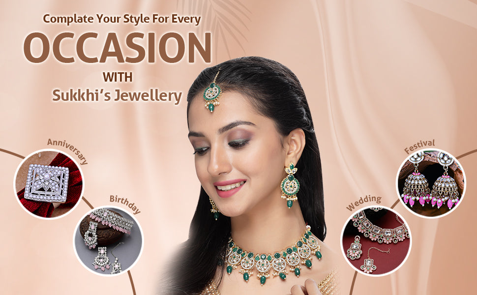 * Premium Quality Craftsmanship: Crafted with meticulous attention to detail, this Sukkhi jewellery set is made from high-quality materials, ensuring durability and long-lasting shine. The intricate craftsmanship reflects the brand's commitment to delivering exquisite and authentic jewellery pieces.