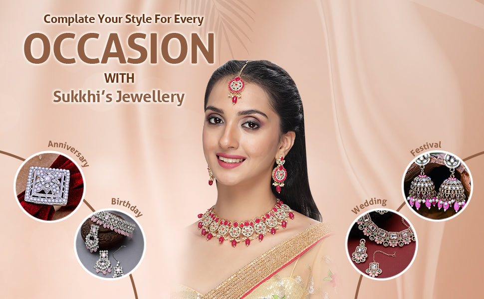 * Premium Quality Craftsmanship: Crafted with meticulous attention to detail, this Sukkhi jewellery set is made from high-quality materials, ensuring durability and long-lasting shine. The intricate craftsmanship reflects the brand's commitment to delivering exquisite and authentic jewellery pieces.