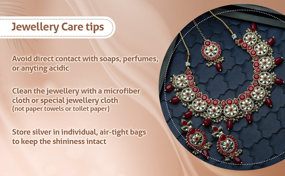 * Care Instruction : Avoid water contact, including swimming or bathing. Keep away from chemicals like perfumes and lotions. Store in a cool, dry place away from sunlight. Clean gently with a soft, lint-free cloth. Handle delicately to avoid bending or pulling. This will keep your jewellery shining for years.