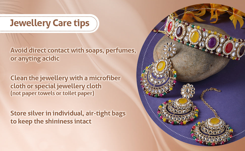 * Care Instruction : Avoid water contact, including swimming or bathing. Keep away from chemicals like perfumes and lotions. Store in a cool, dry place away from sunlight. Clean gently with a soft, lint-free cloth. Handle delicately to avoid bending or pulling. This will keep your jewellery shining for years.