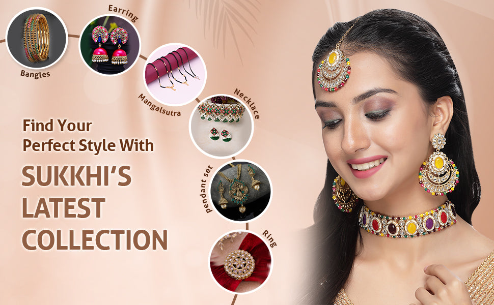 * Complete Jewelry Ensemble: With a coordinated choker necklace, earrings, and Maangtika, this Sukkhi jewellery set provides a well-matched and complete ensemble, suitable for weddings, festivals, and special occasions.