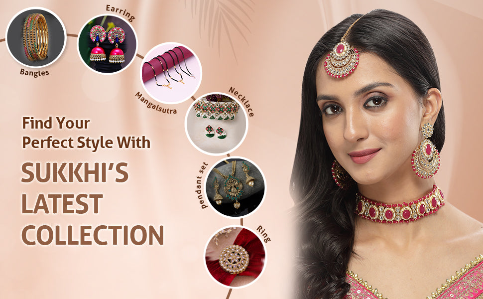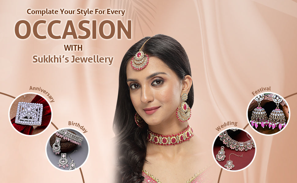 * Complete Jewelry Ensemble: With a coordinated choker necklace, earrings, and Maangtika, this Sukkhi jewellery set provides a well-matched and complete ensemble, suitable for weddings, festivals, and special occasions.