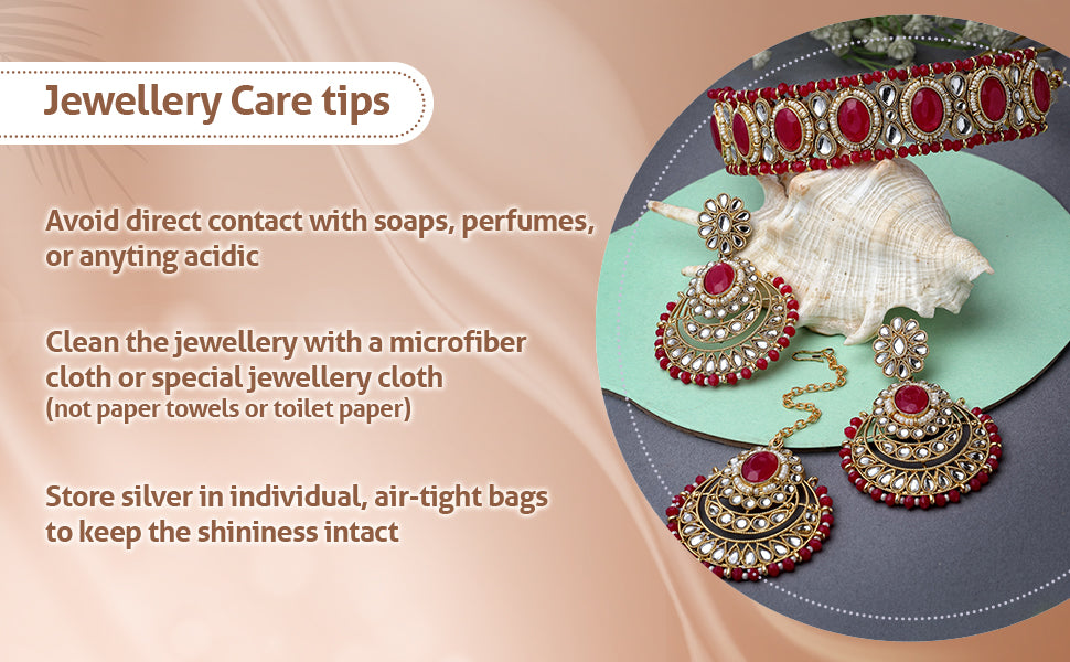 * Care Instruction : Avoid water contact, including swimming or bathing. Keep away from chemicals like perfumes and lotions. Store in a cool, dry place away from sunlight. Clean gently with a soft, lint-free cloth. Handle delicately to avoid bending or pulling. This will keep your jewellery shining for years.