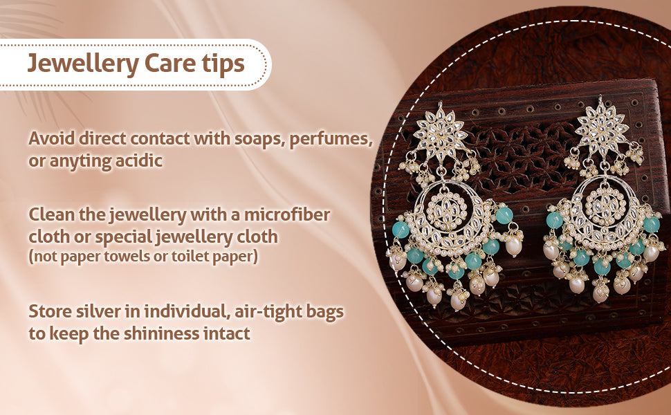* Care Instruction : Avoid water contact, including swimming or bathing. Keep away from chemicals like perfumes and lotions. Store in a cool, dry place away from sunlight. Clean gently with a soft, lint-free cloth. Handle delicately to avoid bending or pulling. This will keep your jewellery shining for years.