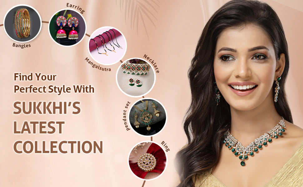 Sukkhi Inspiring Fashionable AD Stone Diamond Studded Gold Plated Green Choker Necklace with Dangle Earring Jewellery Set For Women & Girls|NS107352|Make a statement with the Sukkhi Inspiring Fashionable Gold Plated Green Choker Necklace set, featuring sparkling AD Stone diamond accents. This exquisite set includes matching dangle earrings that complement the choker’s elegant design. The gold plating adds a warm tone that highlights the vibrant green stones, creating a captivating look perfect for festive occasions and special events. Designed for women and girls who love eye-catching accessories, this jewellery set combines traditional charm with contemporary style. Add this set to your collection to enhance your ethnic outfits with a touch of brilliance and sophistication that stands out effortlessly.