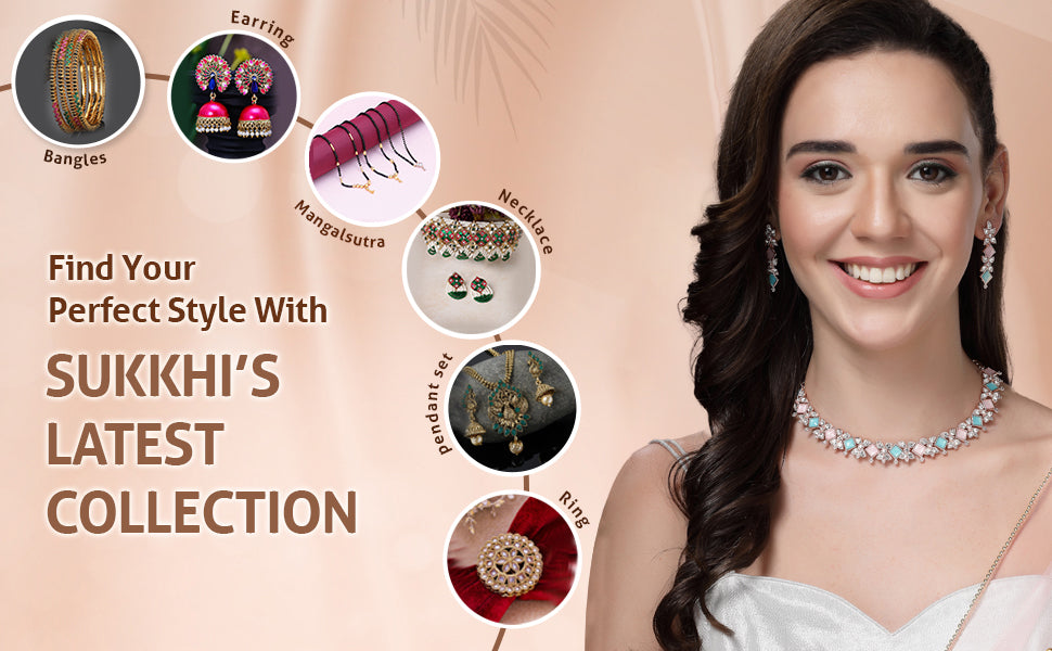 Sukkhi Latest Stylish AD Stones with Gold Plated Choker Necklace Set & Dangle Earrings Jewellery for Women & Girls| Jewellery for Party, Wedding, and Festive Occasions for Women|Add a touch of contemporary elegance to your festive ensemble with this latest stylish choker necklace set from Sukkhi. Designed with attention to detail, the set features glimmering AD stones studded on a gracefully crafted gold-plated choker, paired with matching dangle earrings. The balanced blend of traditional charm and modern flair makes it an ideal choice for weddings, parties, and celebrations. Lightweight and eye-catching, this set enhances your neckline and completes your ethnic look effortlessly. Whether you're gifting it or styling it for yourself, this jewellery set is designed to make a striking impression on every special occasion.