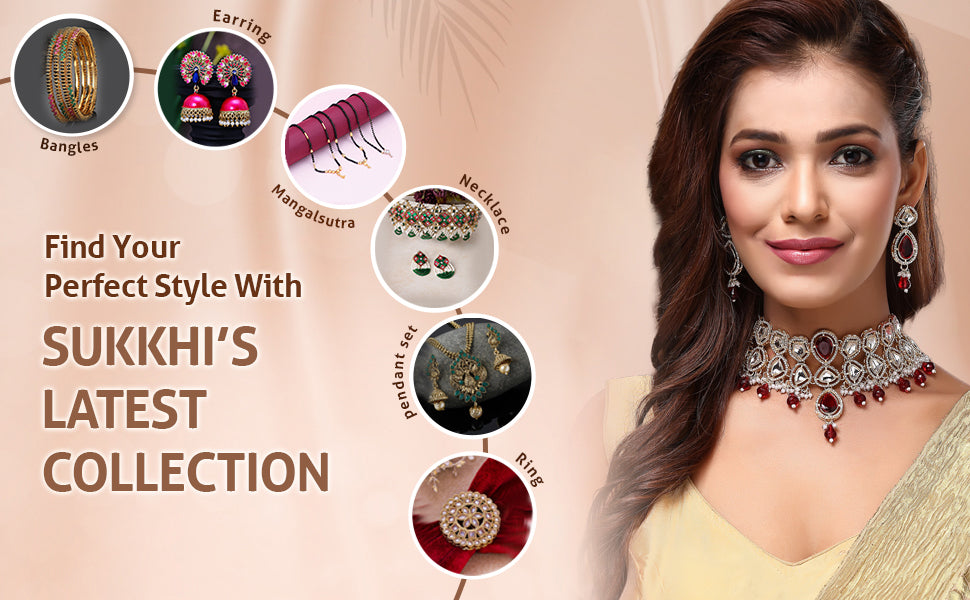 Sukkhi Latest Stylish Gold Plated AD Stones & Beads Studded Red Choker Necklace Set with Drop Earrings Jewellery for Women & Girls|Jewellery for Party, Wedding, and Festive Occasions for Women|1Bring elegance to your festive look with this latest stylish red choker necklace set from Sukkhi. Crafted with precision, the gold-plated choker is adorned with shimmering AD stones and delicate red beads that create a vibrant and eye-catching appearance. Paired with coordinated drop earrings, this set is perfect for adding a traditional yet fashionable touch to sarees, lehengas, or ethnic gowns. Ideal for weddings, festivals, and special celebrations, it blends graceful design with bold colours. Whether worn by you or gifted to someone special, this jewellery set captures attention and enhances your ensemble with effortless charm and striking detail.