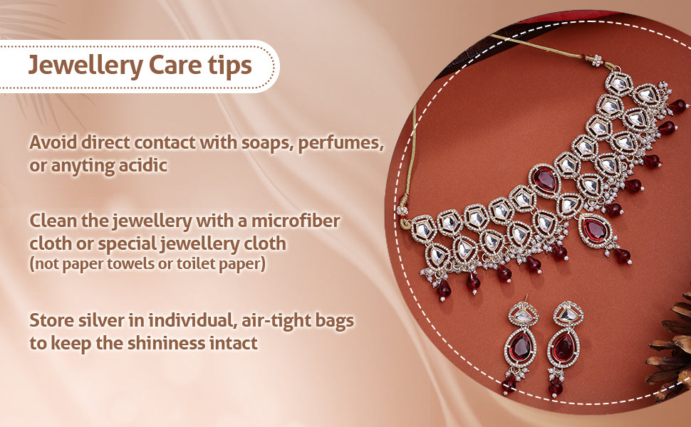 * Care Instruction : Avoid water contact, including swimming or bathing. Keep away from chemicals like perfumes and lotions. Store in a cool, dry place away from sunlight. Clean gently with a soft, lint-free cloth. Handle delicately to avoid bending or pulling. This will keep your jewellery shining for years.