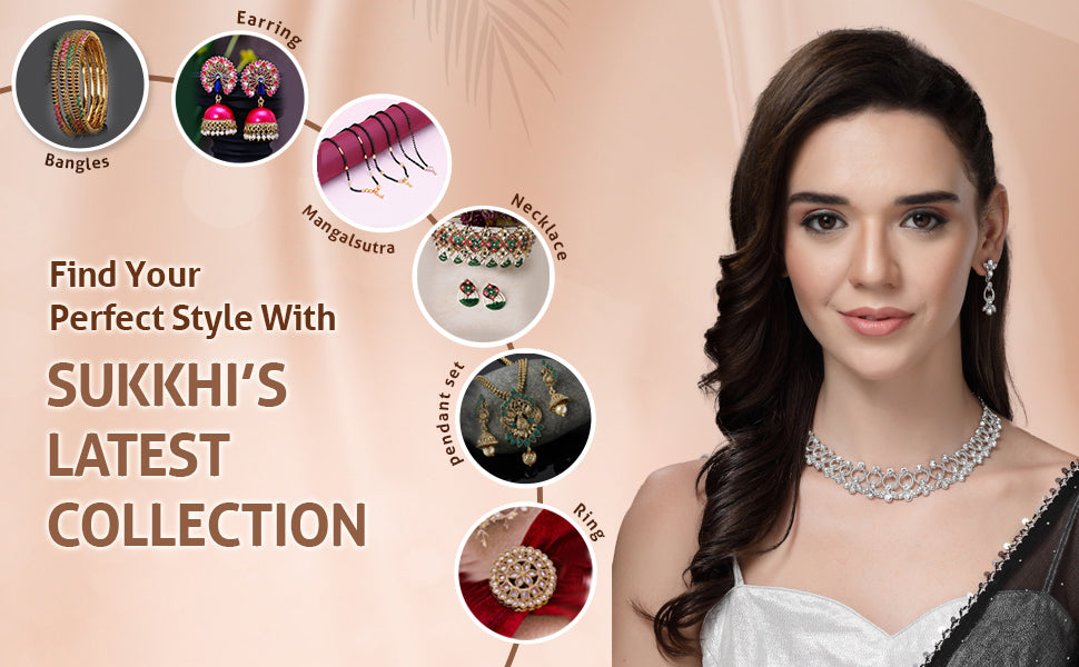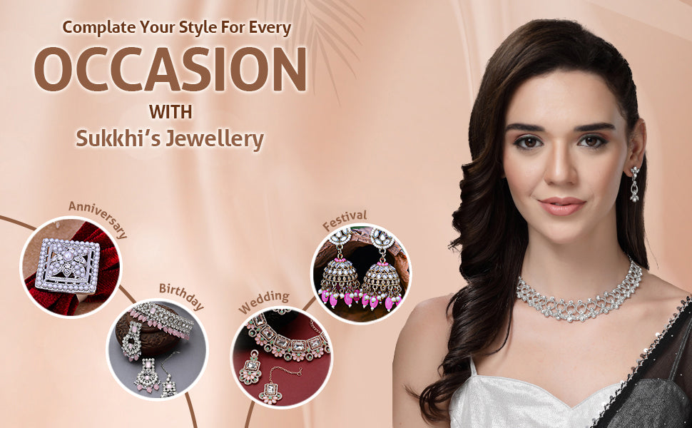 Sukkhi Latest Stylish Rhodium Plated AD Stones Studded Silver Choker Necklace Set with Drop Earrings Jewellery for Women & Girs|Jewellery for Party, Wedding, and Festive Occasions for Women|Sukkhi presents a latest stylish silver choker necklace set, crafted with finesse and adorned with sparkling AD stones. Rhodium plating enhances its shine and adds a polished finish, making it a great match for festive and celebratory occasions. The choker is paired with elegant drop earrings that offer a graceful complement to ethnic or fusion wear. Ideal for weddings, parties, and traditional gatherings, this jewellery set brings a touch of refined style to any ensemble. Designed for women and girls who appreciate statement accessories, it also makes a thoughtful gift for birthdays, anniversaries, or seasonal festivities.