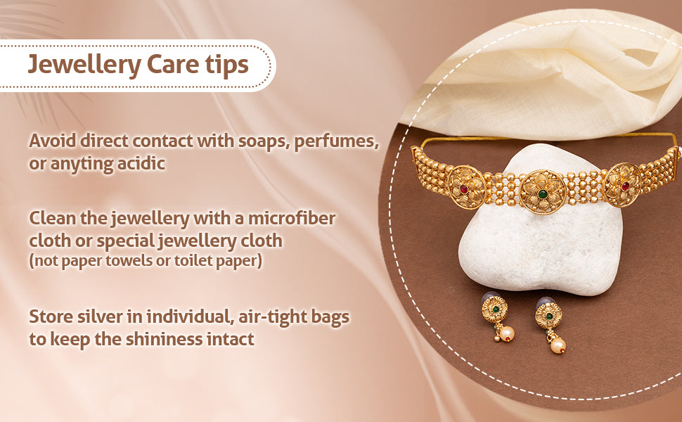 * Care Instruction : Avoid water contact, including swimming or bathing. Keep away from chemicals like perfumes and lotions. Store in a cool, dry place away from sunlight. Clean gently with a soft, lint-free cloth. Handle delicately to avoid bending or pulling. This will keep your jewellery shining for years.