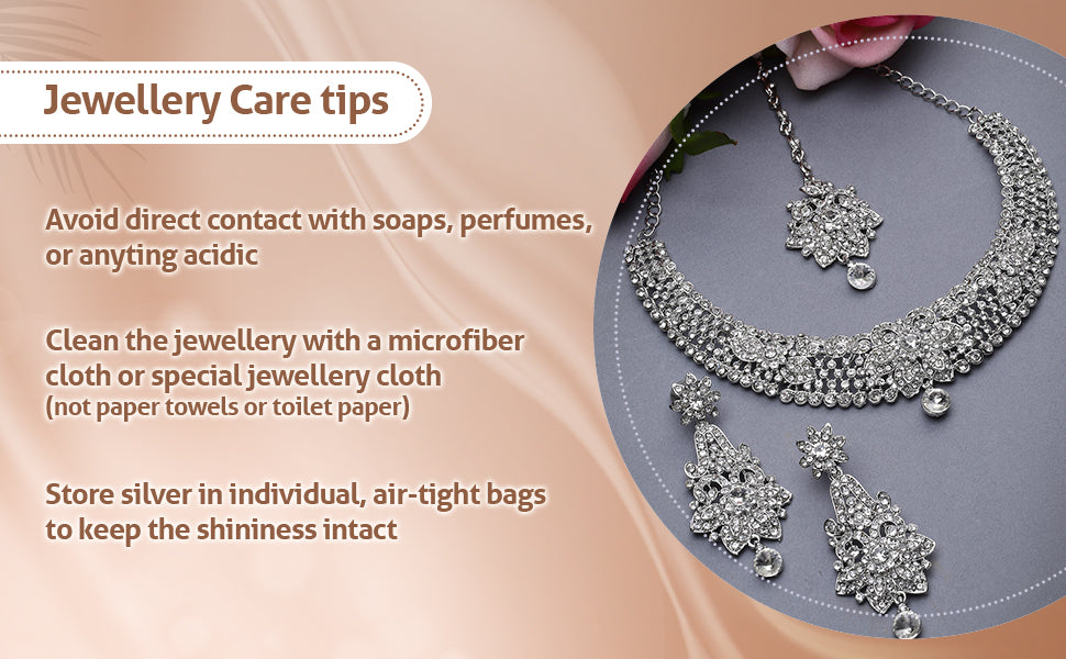 * Premium Rhodium Plating: This jewellery set is made with high-quality rhodium-plated silver, ensuring durability and resistance to tarnish. The rhodium plating enhances the shine and brilliance of the set, giving it an elegant and regal appearance.