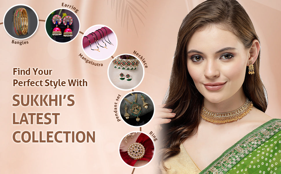 The Sukkhi New Design Traditional Gold Plated with Beads Choker Necklace Set with Dangler Earrings is an elegant accessory that adds a touch of sophistication to any outfit. The choker features intricate gold plating with beautifully arranged beads, creating a timeless and graceful design. The matching dangler earrings complete the set, offering a chic and stylish look. Perfect for women and girls, this set is ideal for weddings, festivals, or special occasions. Its versatile design effortlessly complements various traditional and festive attires, making it a must-have addition to your jewellery collection to enhance your overall appearance.