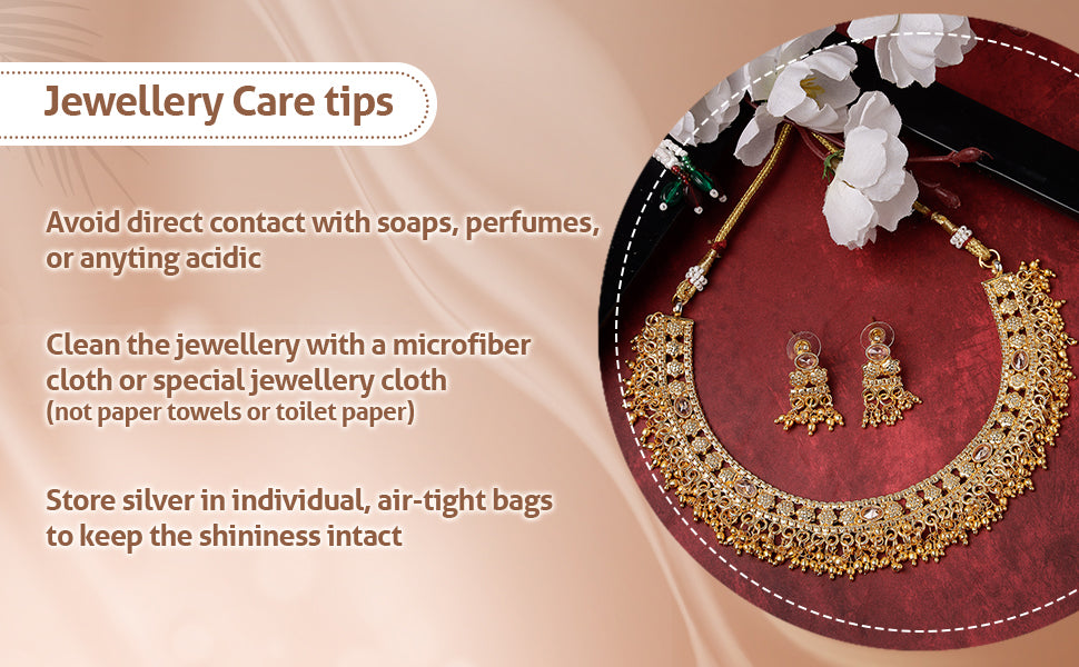 * Care Instruction : Avoid water contact, including swimming or bathing. Keep away from chemicals like perfumes and lotions. Store in a cool, dry place away from sunlight. Clean gently with a soft, lint-free cloth. Handle delicately to avoid bending or pulling. This will keep your jewellery shining for years.