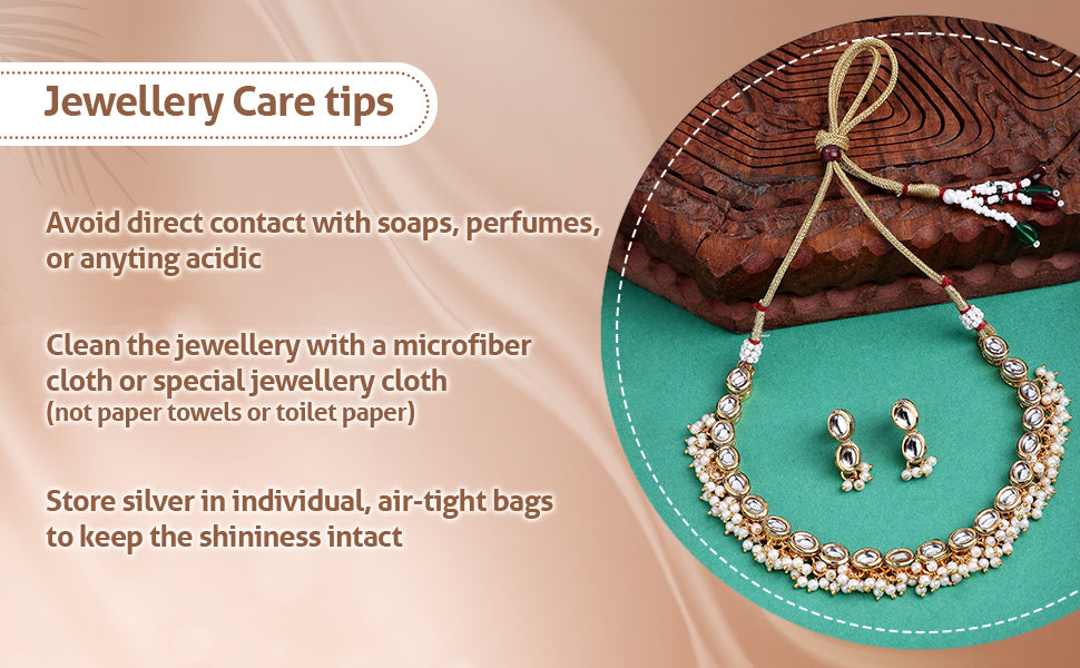 * Care Instruction : Avoid water contact, including swimming or bathing. Keep away from chemicals like perfumes and lotions. Store in a cool, dry place away from sunlight. Clean gently with a soft, lint-free cloth. Handle delicately to avoid bending or pulling. This will keep your jewellery shining for years.