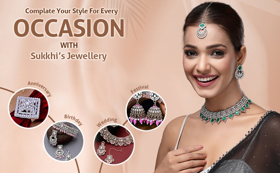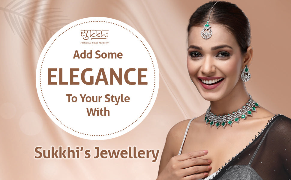 Sukkhi Ornamental Rhodium Plated AD Stones & Beads Choker Necklace Set With Earring And Maangtika | Jewellery Set For Women Add a touch of elegance to your ensemble with the Sukkhi Ornamental Choker Necklace Set, crafted with a sleek rhodium plated finish. This jewellery set features a stunning choker embellished with sparkling AD stones and delicate beads, paired with matching earrings and a maangtika for a complete look. Perfect for festive events, weddings, or special gatherings, it brings a refined and graceful accent to both traditional and modern outfits. The intricate design and thoughtful detailing make it a standout accessory in any jewellery collection. Elevate your occasion wear with this beautifully coordinated and eye-catching set.