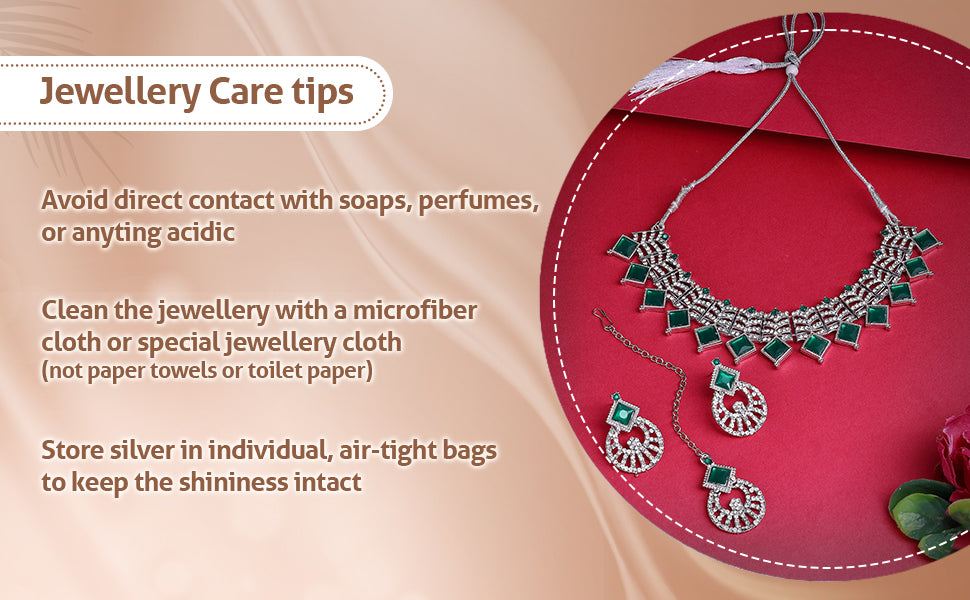 * Care Instruction : Avoid water contact, including swimming or bathing. Keep away from chemicals like perfumes and lotions. Store in a cool, dry place away from sunlight. Clean gently with a soft, lint-free cloth. Handle delicately to avoid bending or pulling. This will keep your jewellery shining for years.