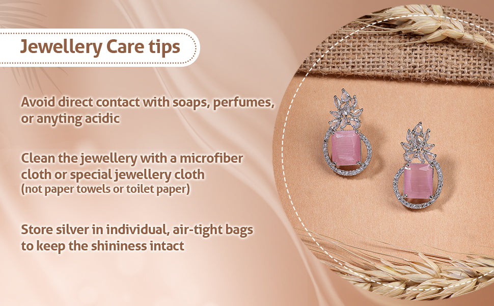 * Care Instruction : Avoid water contact, including swimming or bathing. Keep away from chemicals like perfumes and lotions. Store in a cool, dry place away from sunlight. Clean gently with a soft, lint-free cloth. Handle delicately to avoid bending or pulling. This will keep your jewellery shining for years.