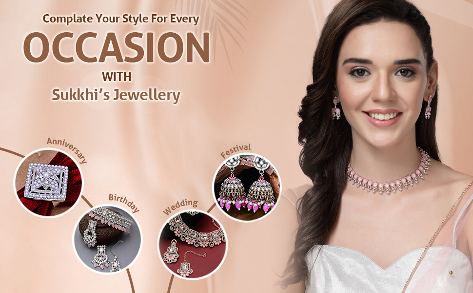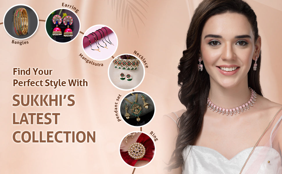 Sukkhi Pretty Pink with Gold Plated AD Stones Studded Choker Necklace Set with Drop Earrings Jewellery for Women & Girls|Jewellery for Party, Wedding, and Festive Occasions for Women|Sukkhi presents a charming pink and gold-plated choker necklace set, designed to add elegance to your traditional and festive wardrobe. Adorned with sparkling AD stones, this jewellery set includes a beautifully crafted choker and matching drop earrings that enhance your neckline with a radiant appeal. Perfect for weddings, parties, and cultural celebrations, it pairs effortlessly with both classic and fusion outfits. The combination of pink accents with golden tones creates a graceful contrast that catches the eye. Gift it to your loved ones or wear it to elevate your own style with a piece that blends delicacy with statement design.