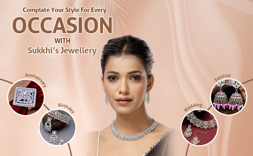 Sukkhi Pretty Stylish American Diamond Studded Rhodium Silver Plated Choker Necklace with Dangle Earring Jewellery Set for Women & Girls|Perfect for All Parties & Festive Occasions|NS107396|Add a sparkling finish to your festive or party outfit with this pretty and stylish choker necklace set from Sukkhi. Designed with care, the rhodium silver plated necklace is adorned with shimmering American Diamonds that catch the light beautifully. The matching dangle earrings enhance the overall elegance, making this set a charming addition to both ethnic and contemporary ensembles. Whether you're attending a wedding, celebration, or evening gathering, this jewellery set is sure to draw compliments. Crafted for women and girls who appreciate standout accessories, it’s a delightful way to elevate your personal style on any special occasion.