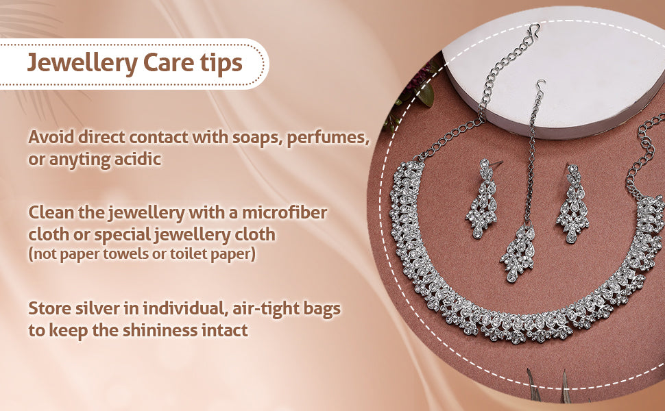 * Care Instruction : Avoid water contact, including swimming or bathing. Keep away from chemicals like perfumes and lotions. Store in a cool, dry place away from sunlight. Clean gently with a soft, lint-free cloth. Handle delicately to avoid bending or pulling. This will keep your jewellery shining for years.