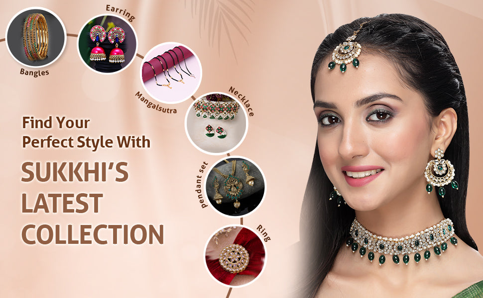 * Complete Jewelry Ensemble: With a coordinated choker necklace, earrings, and Maangtika, this Sukkhi jewellery set provides a well-matched and complete ensemble, suitable for weddings, festivals, and special occasions.