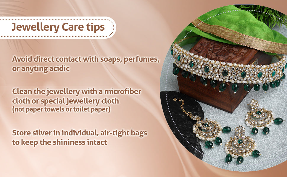 * Care Instruction : Avoid water contact, including swimming or bathing. Keep away from chemicals like perfumes and lotions. Store in a cool, dry place away from sunlight. Clean gently with a soft, lint-free cloth. Handle delicately to avoid bending or pulling. This will keep your jewellery shining for years.