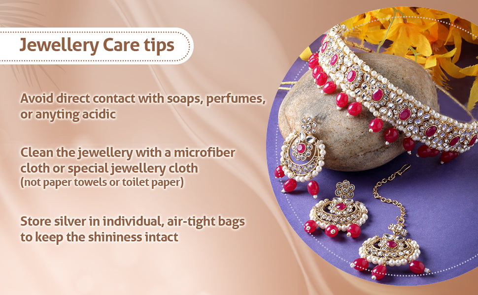 * Care Instruction : Avoid water contact, including swimming or bathing. Keep away from chemicals like perfumes and lotions. Store in a cool, dry place away from sunlight. Clean gently with a soft, lint-free cloth. Handle delicately to avoid bending or pulling. This will keep your jewellery shining for years.