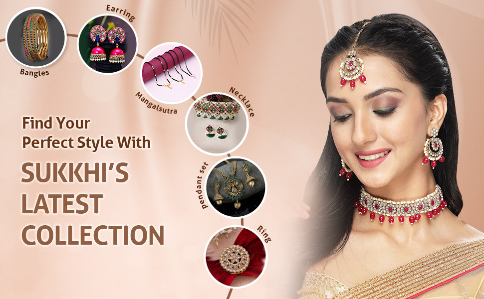 * Complete Jewelry Ensemble: With a coordinated choker necklace, earrings, and Maangtika, this Sukkhi jewellery set provides a well-matched and complete ensemble, suitable for weddings, festivals, and special occasions.