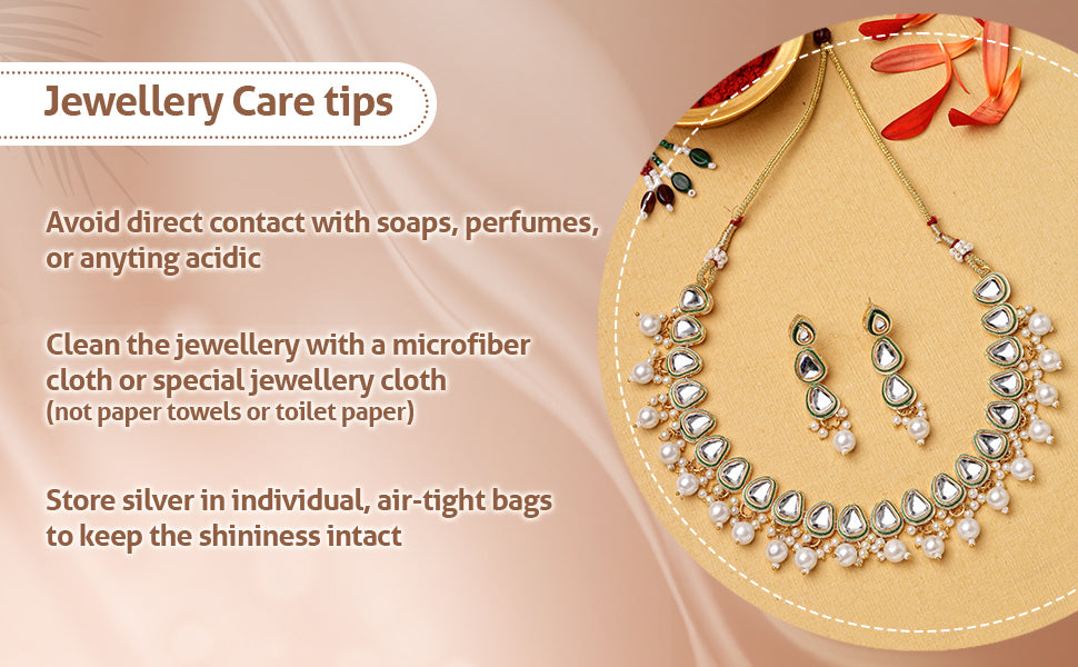 * Care Instruction : Avoid water contact, including swimming or bathing. Keep away from chemicals like perfumes and lotions. Store in a cool, dry place away from sunlight. Clean gently with a soft, lint-free cloth. Handle delicately to avoid bending or pulling. This will keep your jewellery shining for years.
