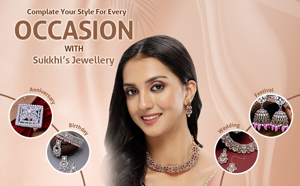* Premium Quality Craftsmanship: Crafted with meticulous attention to detail, this Sukkhi jewellery set is made from high-quality materials, ensuring durability and long-lasting shine. The intricate craftsmanship reflects the brand's commitment to delivering exquisite and authentic jewellery pieces.